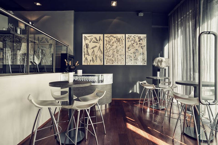 Banco alto con asiento en tecnopolímero reciclable presentado en diferentes colores, fácil de limpiar con estructura tubular de acero de 22 mm. resistente y estable en acabado cromo o pintado en color blanco o antracita. Con gomas en sus 4 patas para evitar derrapes. Para uso en interiores.