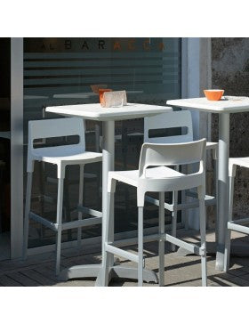 Banco alto Divo fabricado en polipropileno en colores llamativos, tonos semi brillantes, base estructura robusta de aluminio anodisado cuadrado de 25 x 25 mm. c