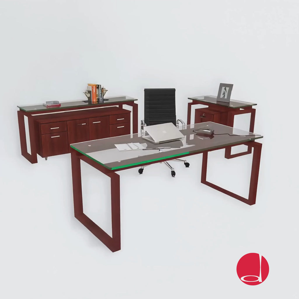 Escritorio modelo Pei. Medida de base: 1.80m × 0.80m x 0.73m alto. Base elaborada en madera maciza natural de Encino americano. Acabado en barniz semi mate.