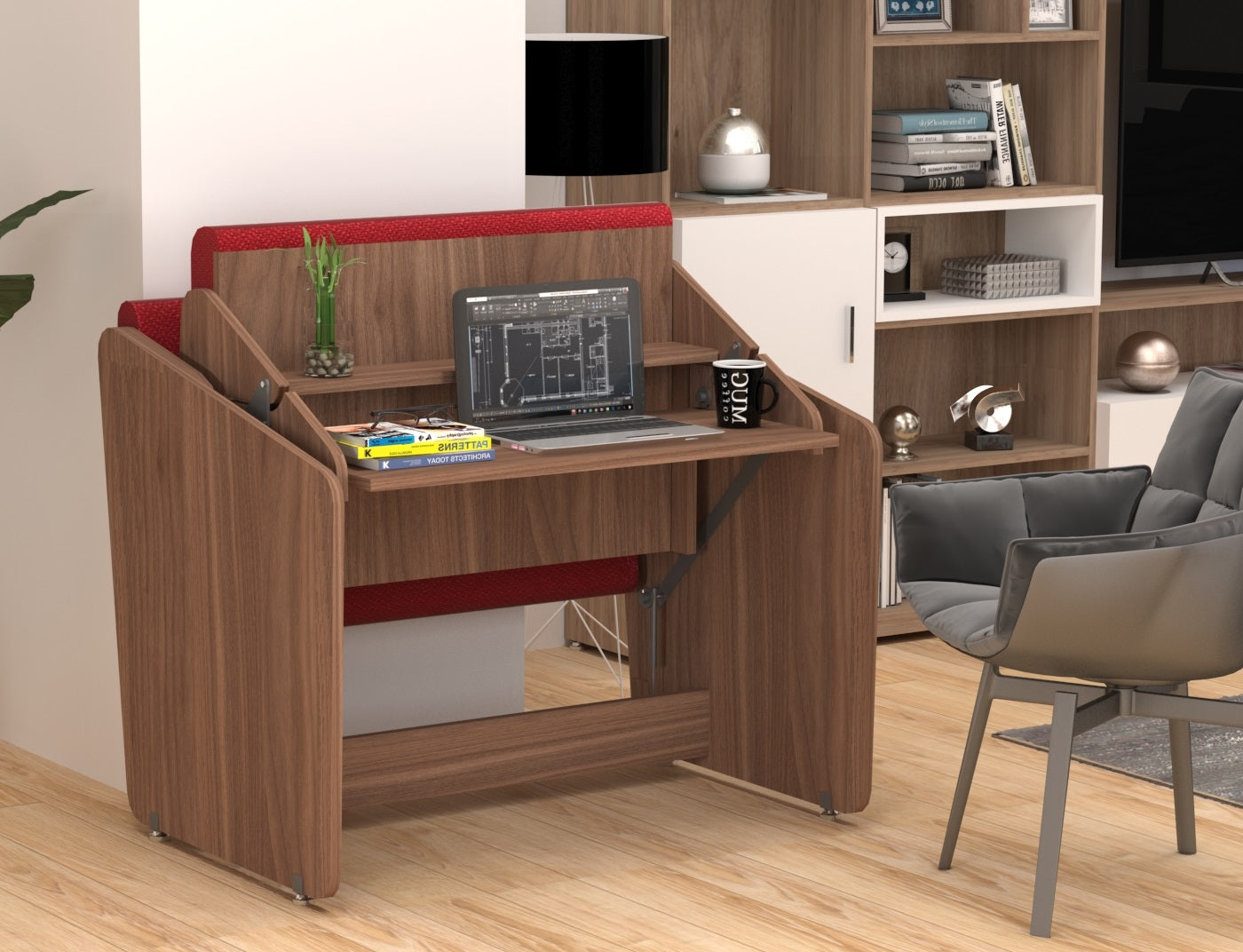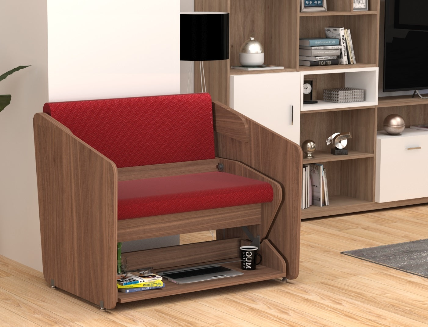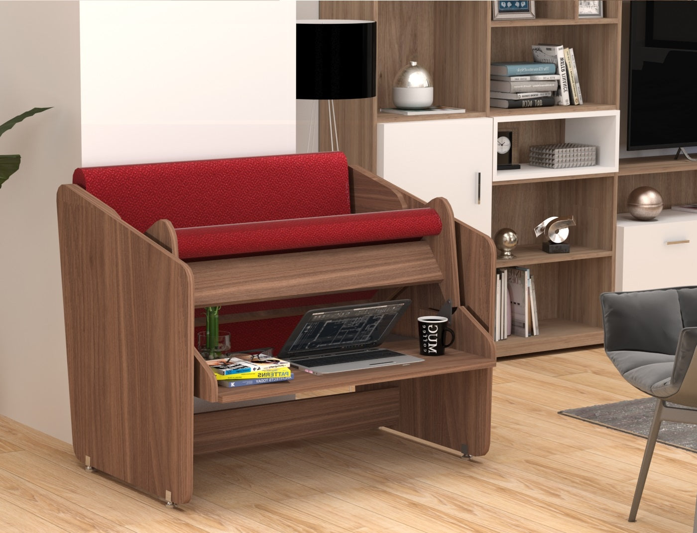 Sillón individual fabricado en melamina de alta resistencia en 19 mm, herrajes de importación para abatir asiento tapizado en tela. Cubierta de escritorio en melamina.